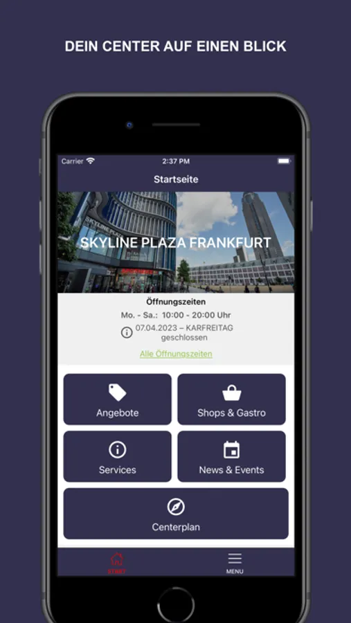 • Wie in einem "Digitalen Schaufenster" siehst du die angesagten Trends, Mode-Highlights und Angebote aus dem Skyline Plaza Frankfurt – wo und wann immer du willst!