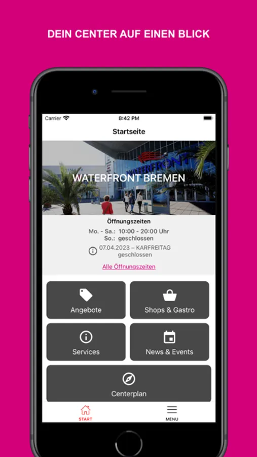 • Der interaktive Centerplan hilft Ihnen beim Finden der Shops und Gastrobetriebe im Center und zeigt Ihnen auch gleich alle Öffnungszeiten und Kontaktdaten auf einen Klick.