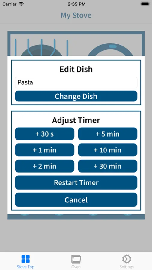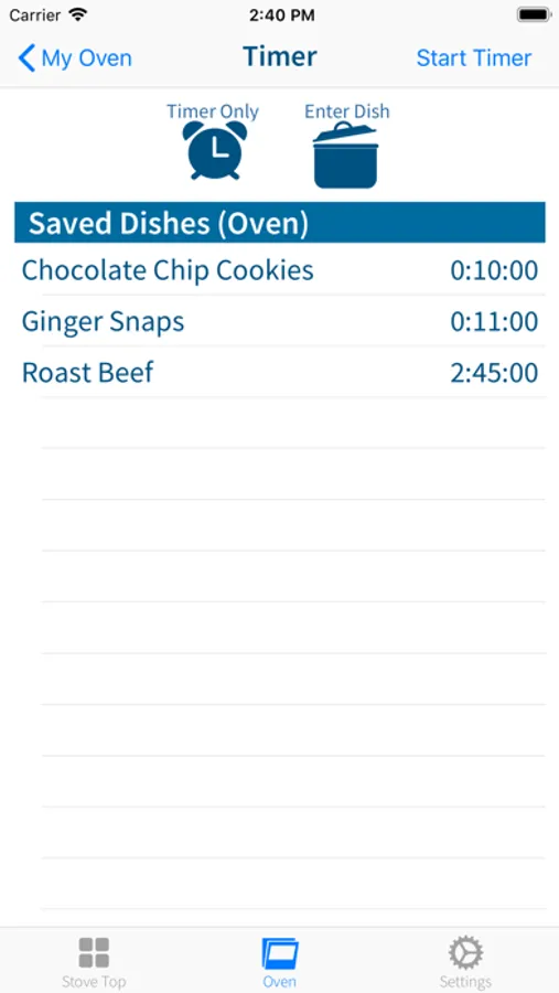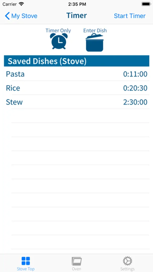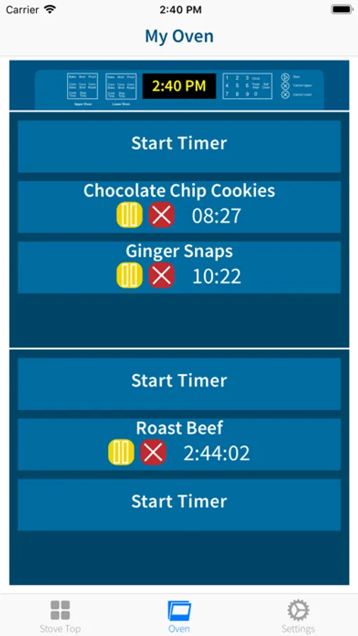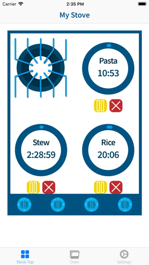 Welcome to CookTime, the premier stove and oven timer. One may well ask “Does the App Store need another timer?” Well, if a timer can handle up to eight burners on a stove and 5 oven racks in each of 2 ovens, can allow you to move timed dishes to a new location, can keep a list of your favorite dishes and the time it takes to cook them, can pause or add time to an actively running timer, then the answer is an enthusiastic “Yes!”