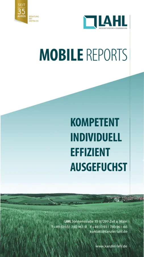 Mit unserer App LAHL Reports können Sie als Mandant Ihre betriebswirtschaftliche Auswertung (BWA) auch auf Ihrem Smartphone oder Ihrem Tablet zu jeder Zeit angezeigt bekommen.