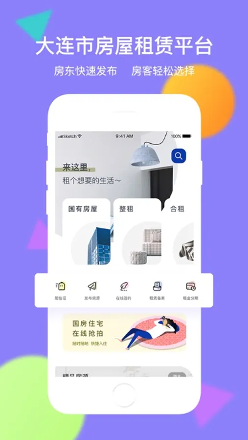 大连市租房网是专业的租赁公共服务平台,以租赁为核心,为百姓提供公共服务、便民服务、开启互联网智能生活的服务模式。以房为核心,充分运用互联网与物联网结合技术,实现360全景在线看房和智能门锁的用户体验。平台为用户提供居住证办理,公积金申请,租赁备案等公共服务。通过与银联合作,为有需求的百姓提供12家银行租金分期申请业务的入口通道。整合生活服务行业资源,为用户搬家、宽带、保洁等便捷利民互联网标准化便民服务