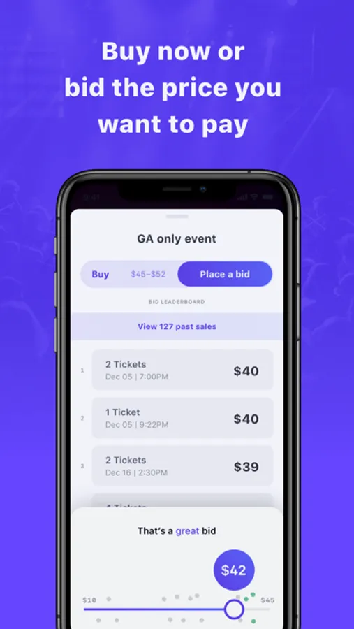 While Headliner allows fans to buy tickets to shows at the current list price, Headliner also gives buyers the ability to bid the price they want to pay. With our technology and network of sellers, we can be sure that the moment any tickets drop to a buyer's bid price, Headliner will be there to scoop them up for the buyer. We do not charge the buyer until the tickets are found at their bid price, so there is no downside to bidding.