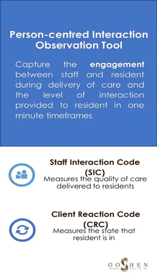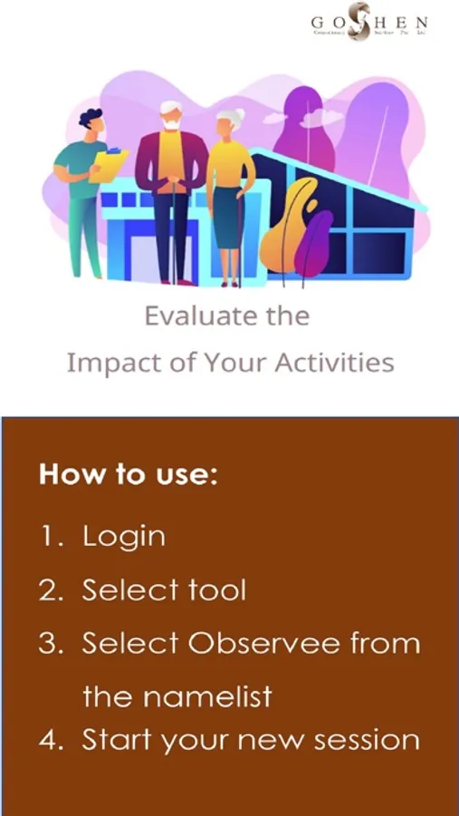 Use Goshen’s Person-Centric Observation Tools to facilitate the recording of client and staff interactions and engagement. Easily enter observation data and generate automatically tabulated reports. Reduce the hassle of printing or manual calculation with our app today.