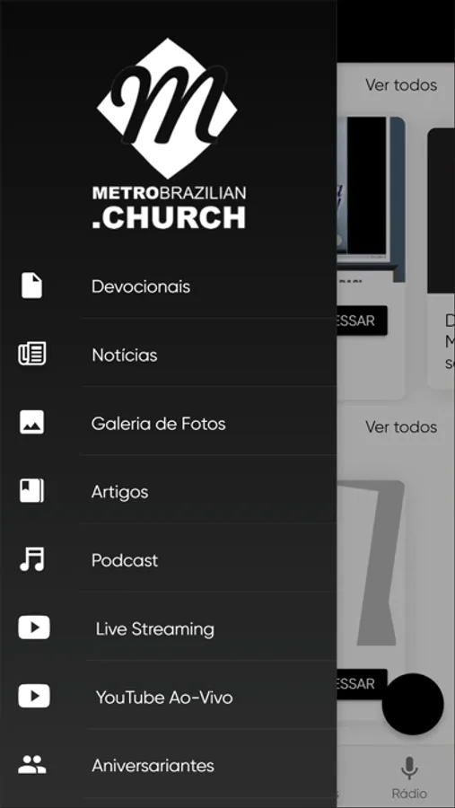Aplicativo Oficial da Igreja Brasileira Central Florida conta com as seguintes funcionalidades: