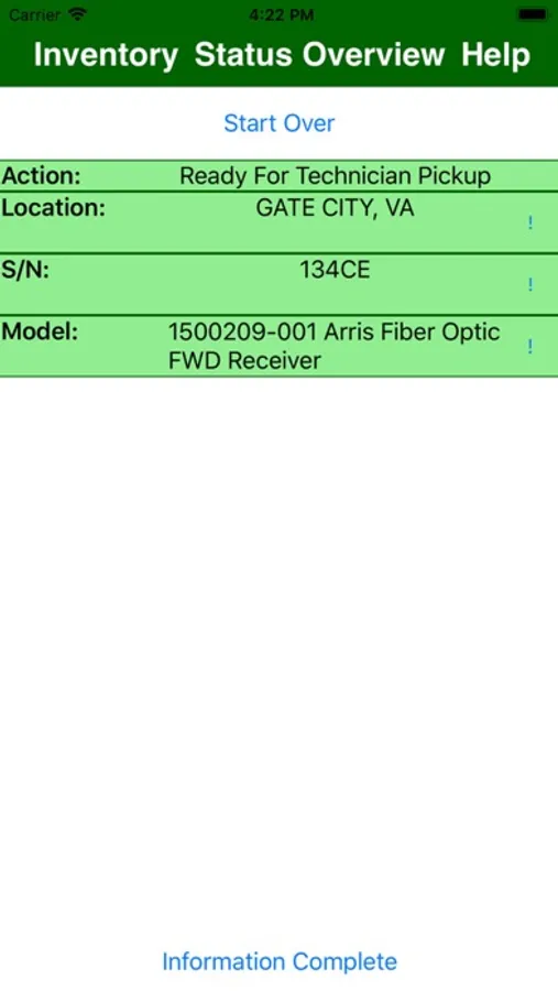 A remote inventory application aimed at tracking spare electronics inventory in businesses that have a need to have spare electronics inventory on hand for maintenance/replacements. It is also used to virtually tag an inventory item for repair allowing the user to associate problems for the repair.
