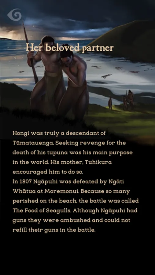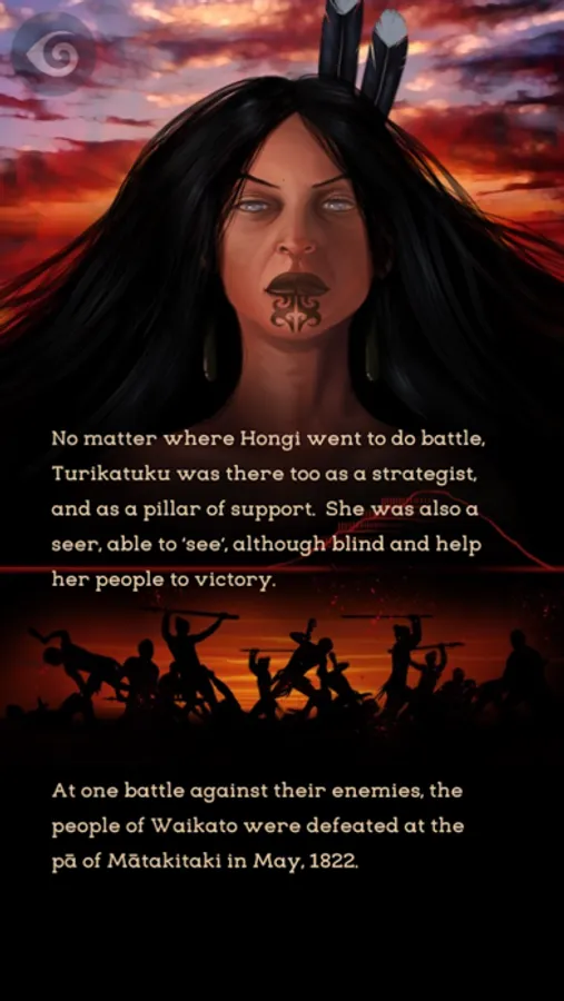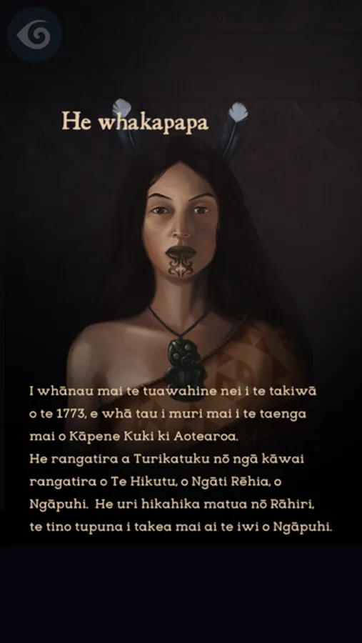 Turikatuku's story is told in te reo Māori and English, with voice-overs in both languages read by 2 of her descendants Te Whai Mātauranga Maiporo Smith and Whetu-Iti Doreen Silver. The app has 3 chapters and is aimed for reading ages 8–12 years.
