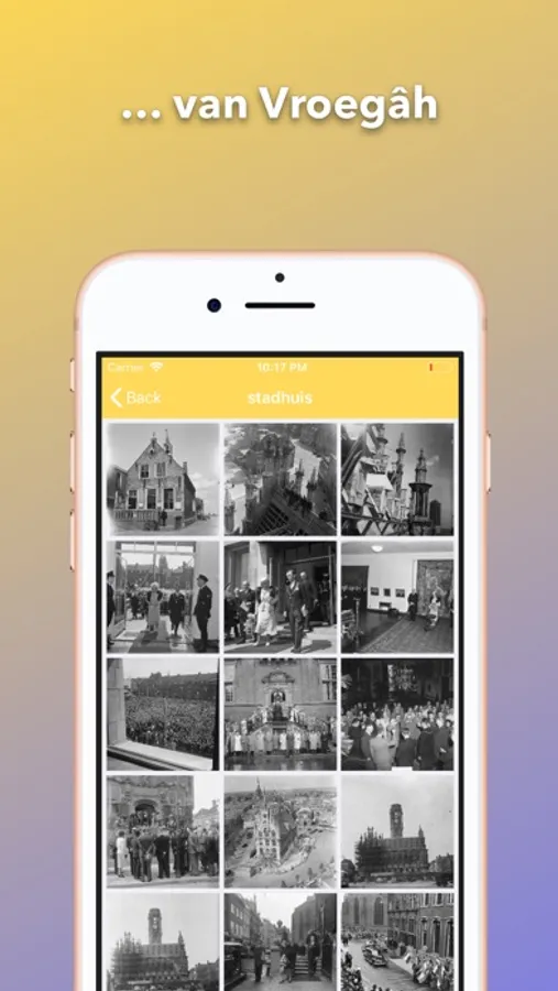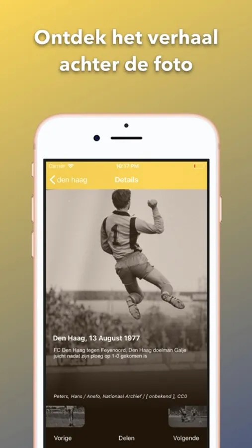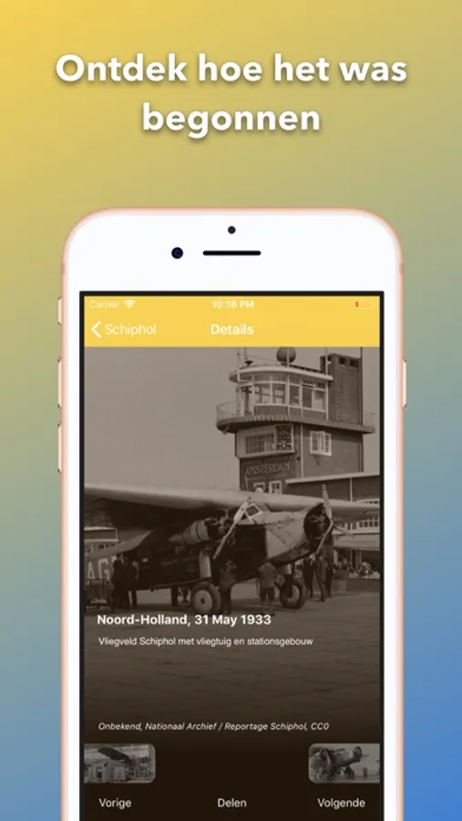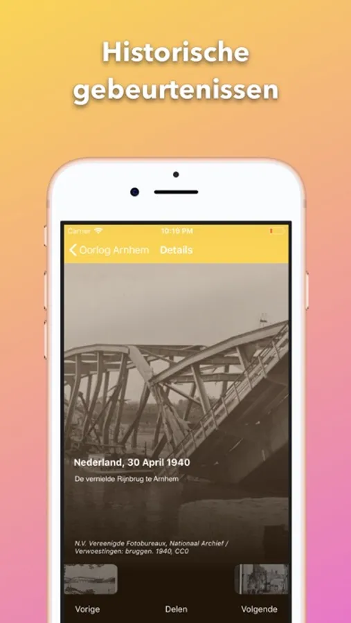 Via de app vind je foto's over onze geschiedenis. Doorzoek de collectie van het Nationaal Archief en bekijk de foto's en kaarten van een beperkt, maar groeiende collectie.