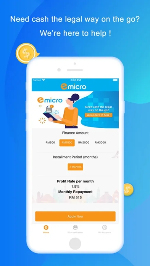 Emicro i-Financing is is an app based financial services platform. With the Emicro app, you can apply for Shariah Concept-based financing anywhere and seamlessly on your smartphone.