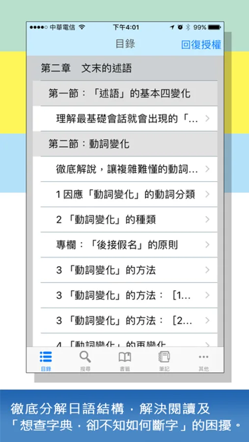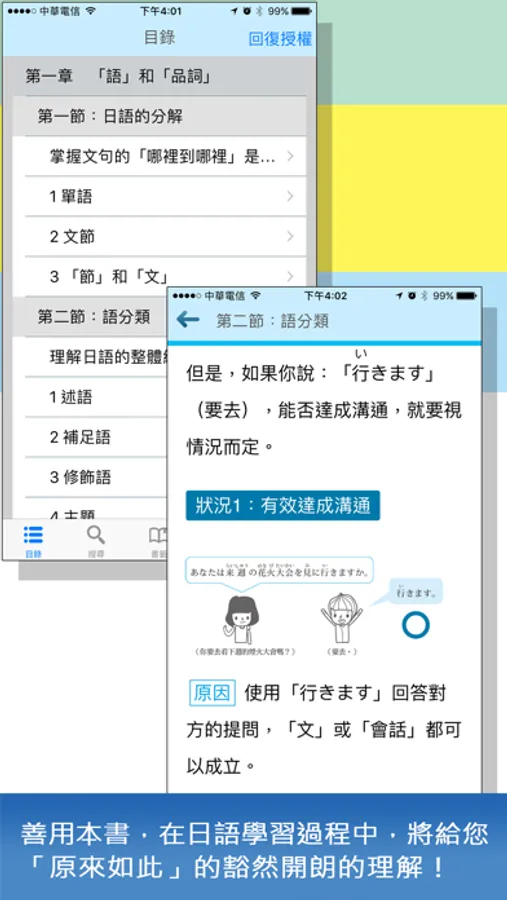 2. 各領域層層剖析:依「章」—「節」—「項」,層層剖析,解說日語結構。