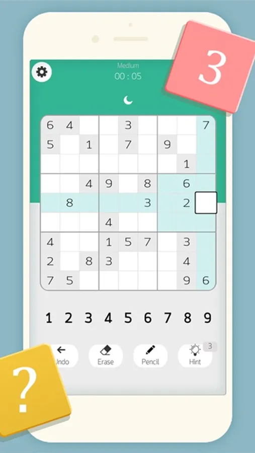 Tap on an empty cell to select it, then simple tap on a number below to enter a solution.