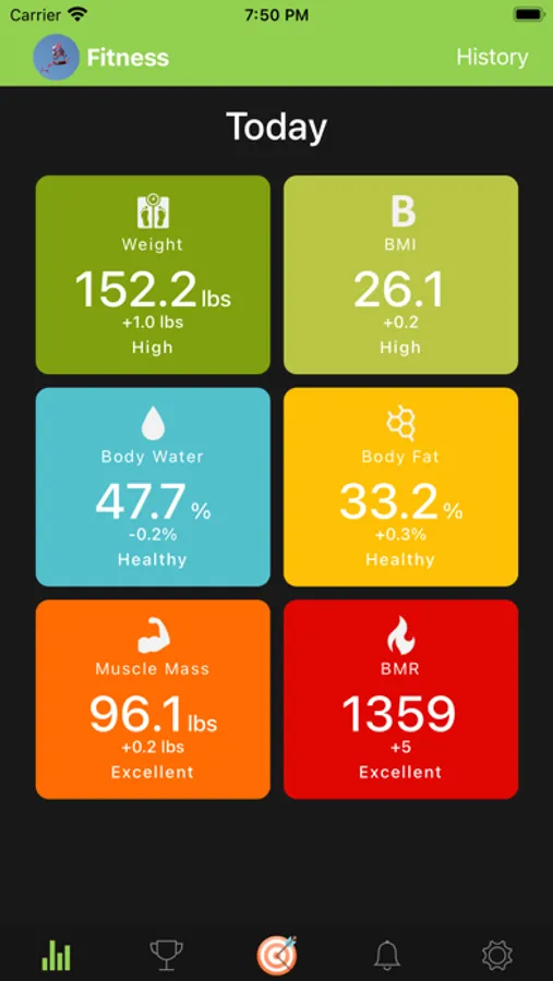 6. All your logged body composition data can be found on History page