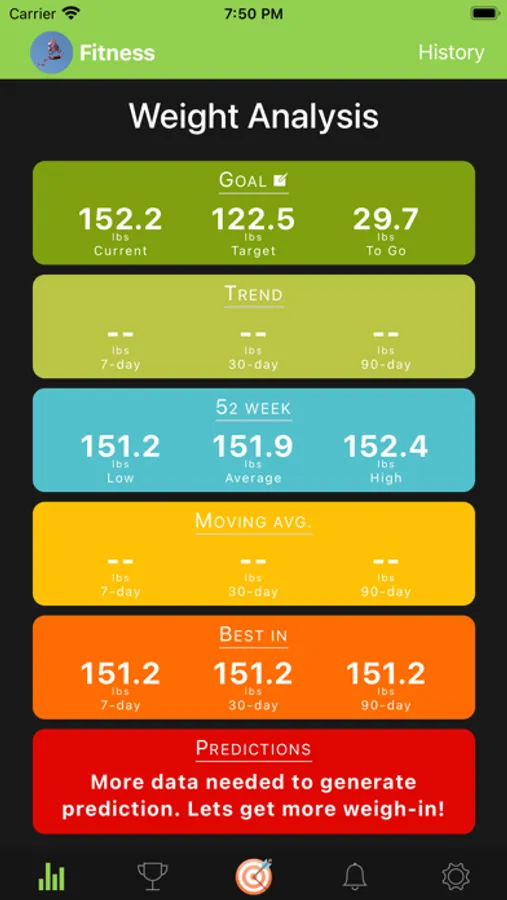 8. Set target weight and get complete reporting and graphs