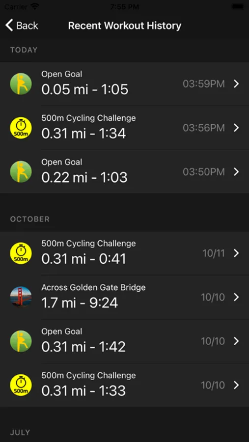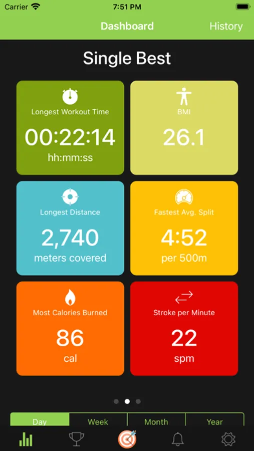 7. All your logged workout can be found on History page
