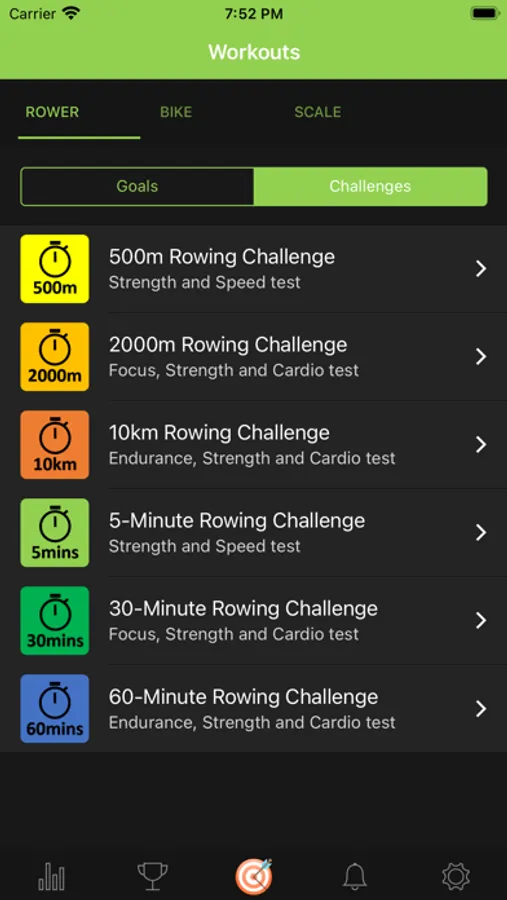 3. Choose a Goal/Challenge and start exercise