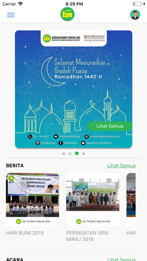 Aplikasi ini memberikan layanan akses informasi kepada Orang Tua Murid / Wali Siswa tentang kegiatan belajar mengajar maupun kegiatan – kegiatan lain Sekolah Bakti Mulya 400.