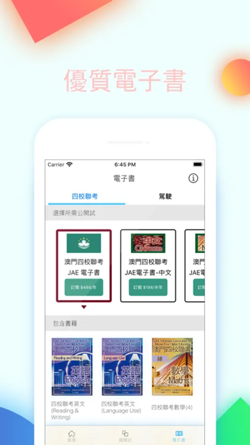 【實用課程】:課程覆蓋國際考試(GCE, SAT, LCCI, IELTS)和地區考試(DSE, JAE)等學習版塊。額外提供一系列追夢雜誌,為賽道上的各位加油打氣。