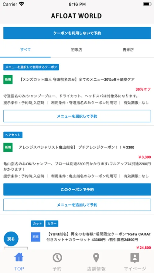お得なクーポンが配信されます。ネット予約時にクーポン利用での予約も可能なので来店時もスムーズに施術頂けます。
