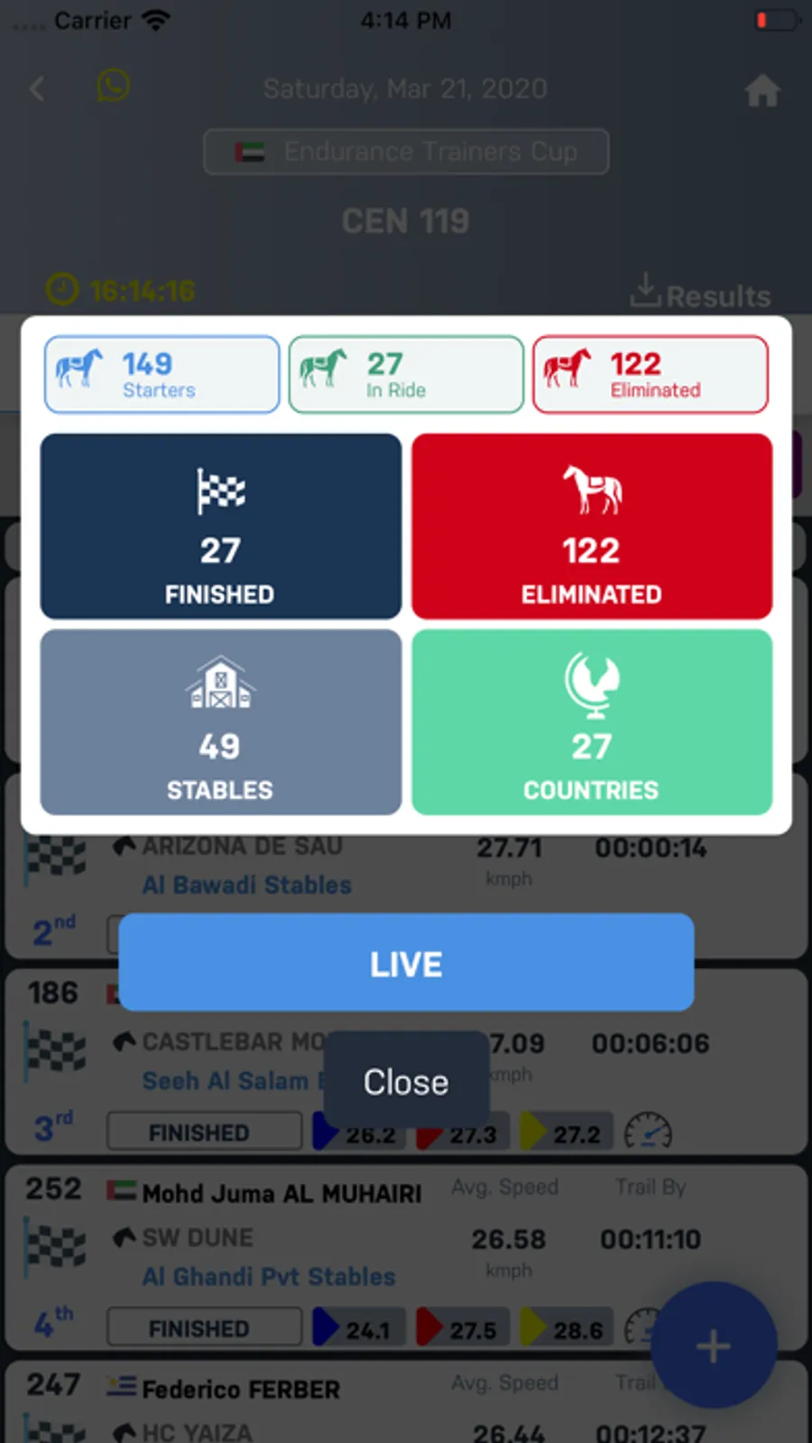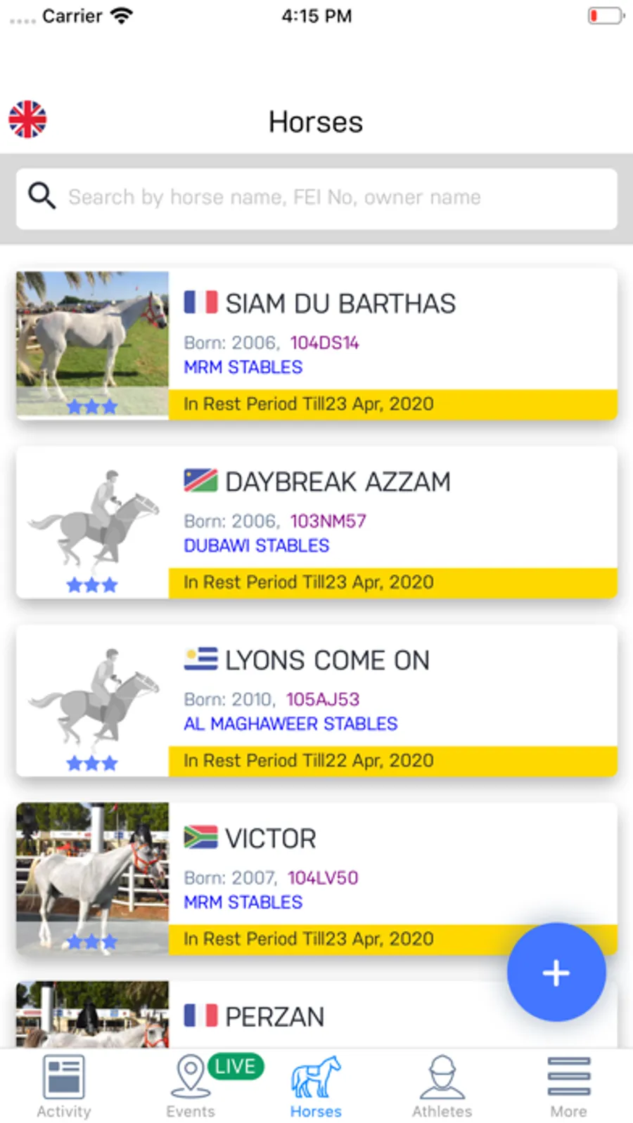 Intisaar is an app for promoting the equestrian endurance riding sport. The app provides a detailed directory of international events, the participating riders and the horses with up-to date information including ride parameters and performance. It also provides an engaging user experience and window into the rides in the form of media and an ability for users to interact with the members of the equestrian endurance riding community.