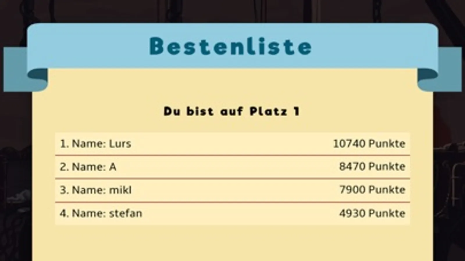 Nach drei erfolgreichen Runden kannst du dich in die Bestenliste eintragen!
