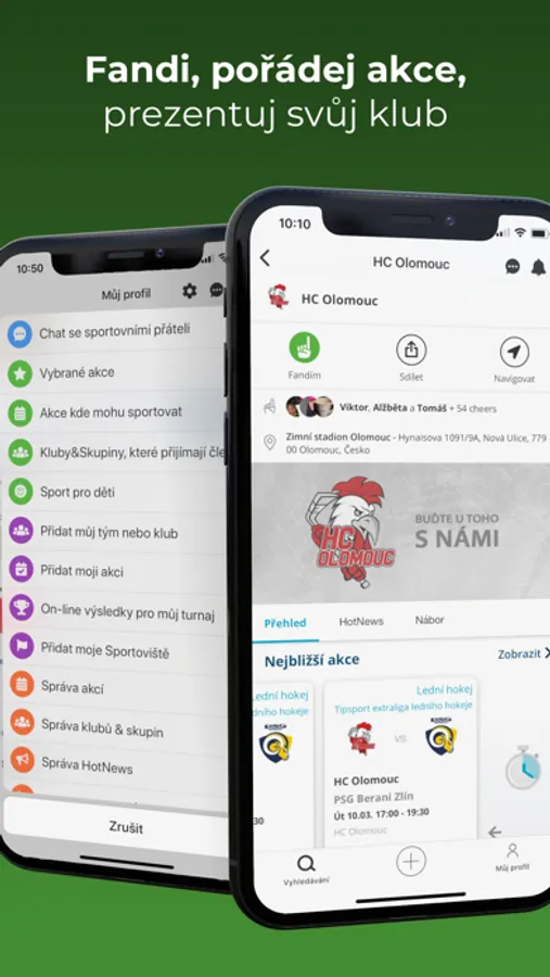 Aplikaci používají FC Baník Ostrava, HC Ridera Vítkovice, Akademie Tomáše Vernera, Czech Knights, Český para hokej, SK Sigma Olomouc, HC Olomouc, 1. SC Tempish Vítkovice, DHK ZORA Olomouc a další sportovní kluby sportovních klubů, které jsou tady pro vás.