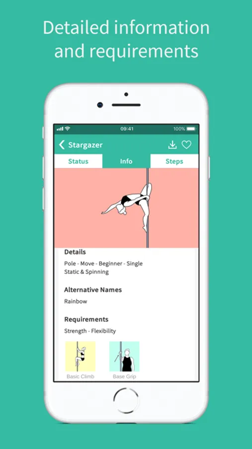 Never forget the name of a figure again! A mobile app that makes every aspect of pole dance training easier. Watch video tutorials, read instructions step by step, mark your favorite moves and track your progress.