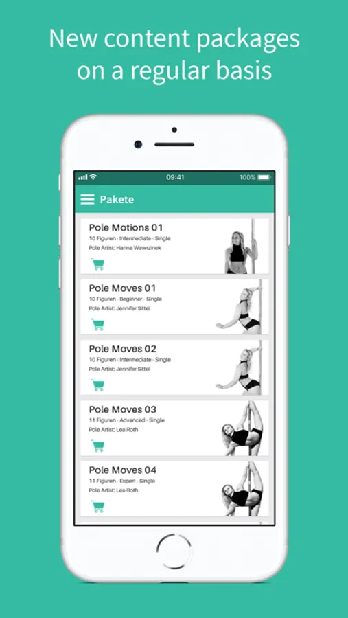 You can buy new content packages containing a minimum of 10 new elements for your collection. Learn from your favourite pole instructors with our special pole star packages.