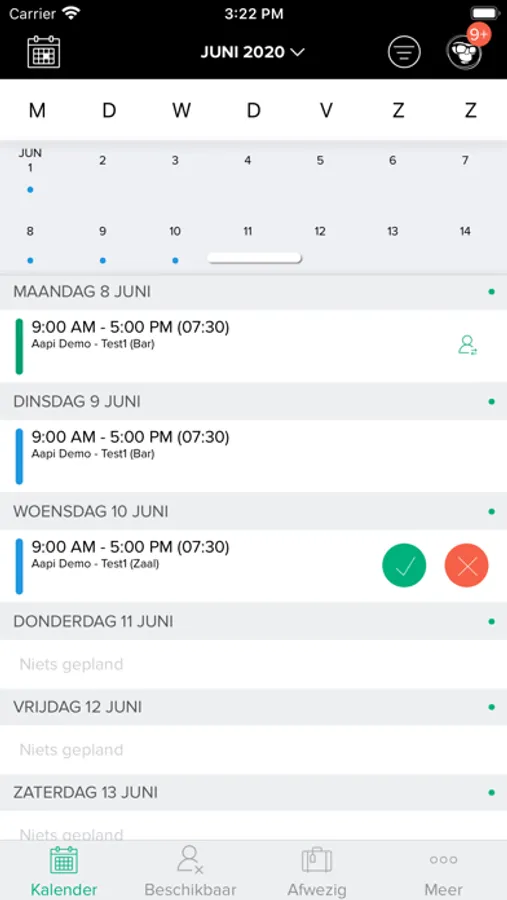 Accepteer invitaties om te werken van je werkgever rechtstreeks in de app. En laat ze weten wanneer jij wel of niet beschikbaar bent.