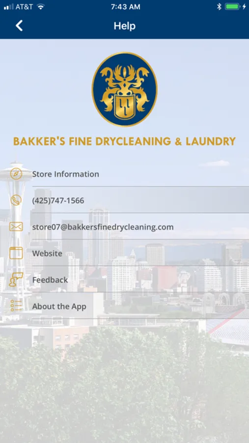 5) Quickly contact Bakker's Fine Drycleaning and Laundry by phone or email and access their website all directly from your device.