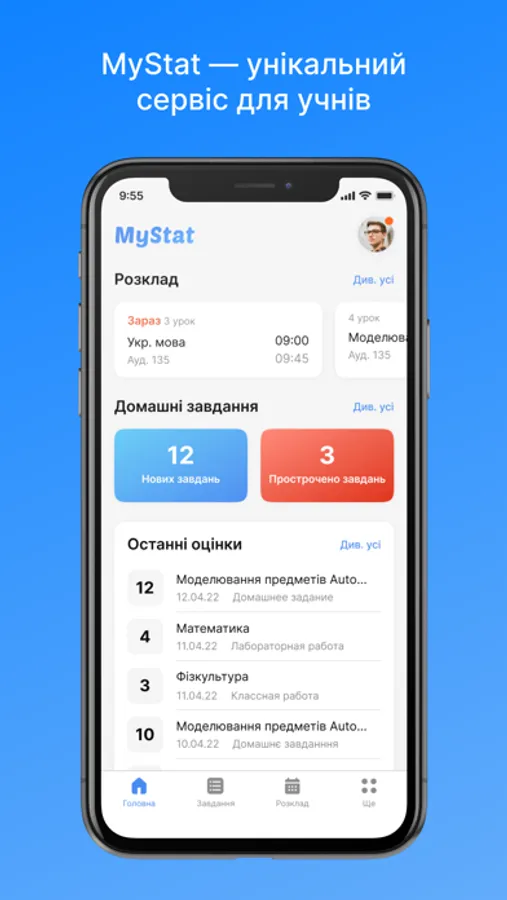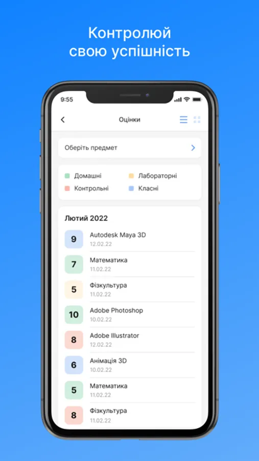 • видеть успеваемость и достижения: оценки по различным видам работ и тренды в результатах обучения;