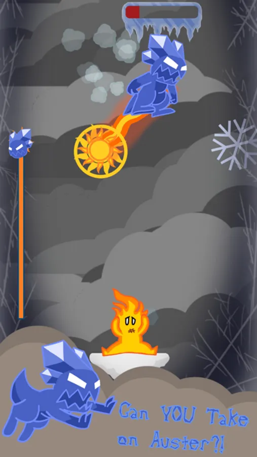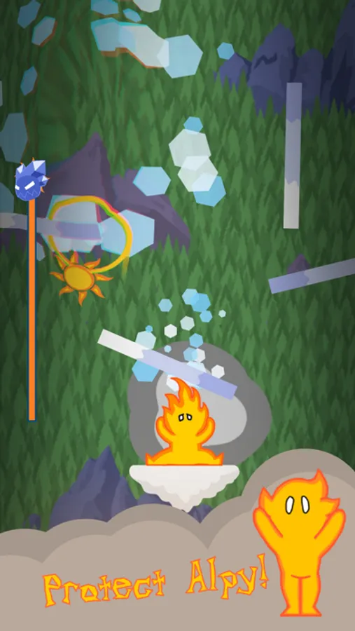 It’s the dawn of a new day, and Alpy the sun spirit is on a mission to bring warmth and light to the world. In his way is Auster, a vengeful winter spirit who wants ice and snow to rule the land. Block falling ice, fend off Auster, and keep Alpy safe as he rises to the top!