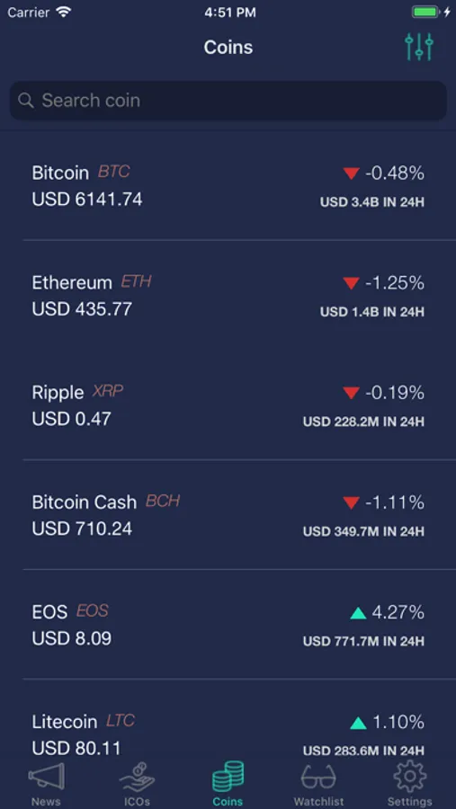 The Coins page keeps you up to date with many of your favorite cryptocurrencies, such as Bitcoin, Ethereum, Ripple and much more...