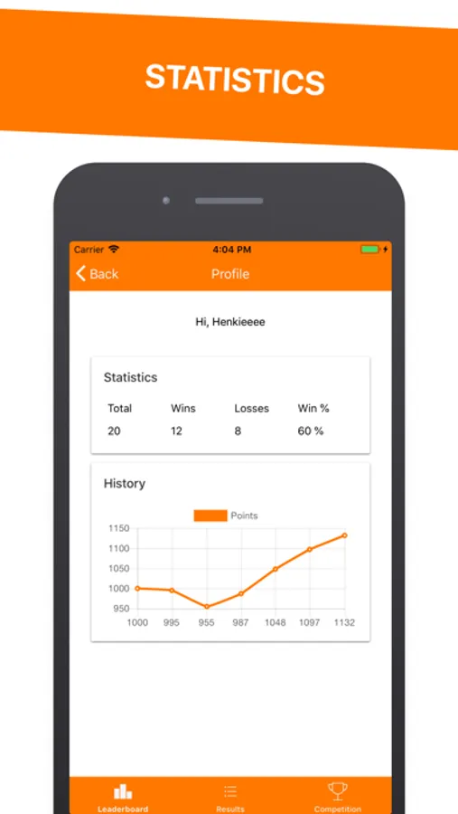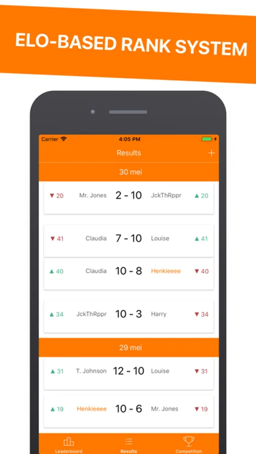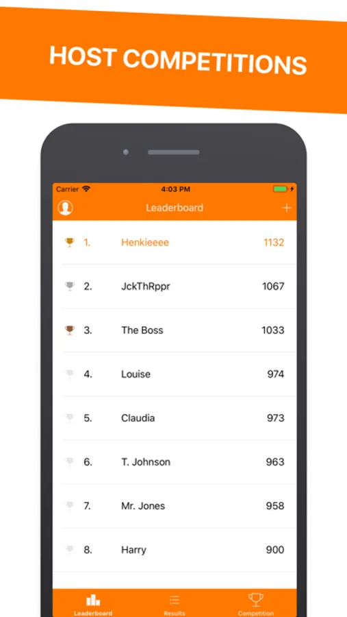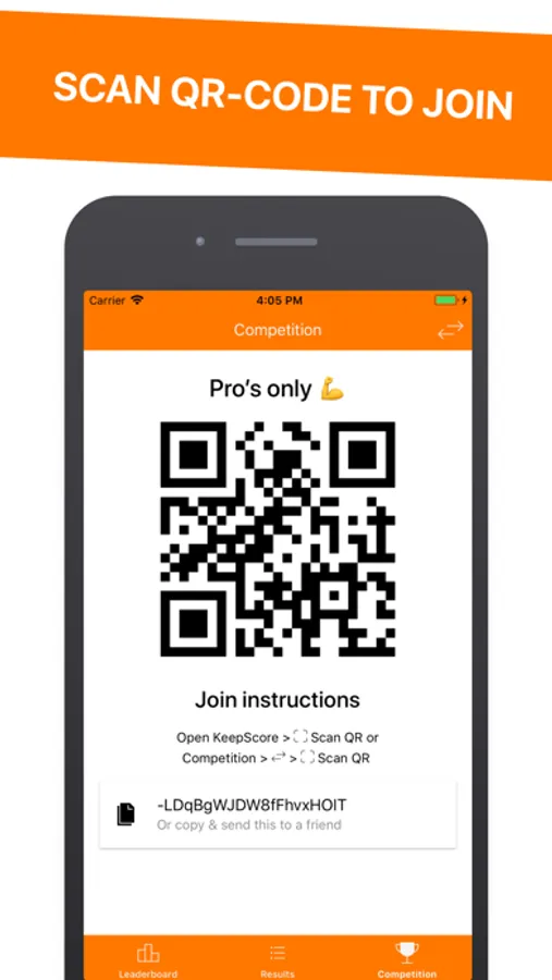Invite your friends or colleagues to join your competition. For them it's as simple as scanning your competition QR-code, send them your unique generated code which they can enter manually. You can also add players manually if they don't own a smartphone.