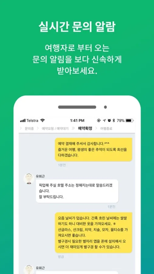 2. 실시간으로 여행자와 대화 할 수 있습니다.
