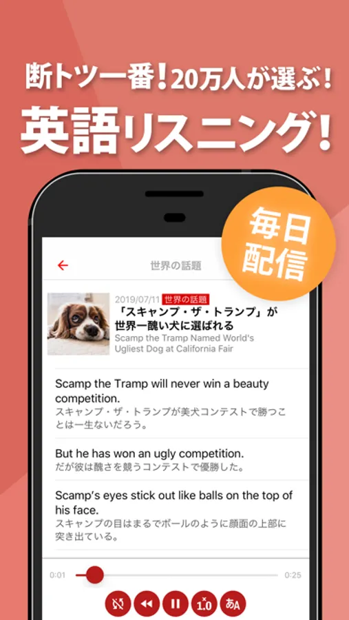 毎日配信、英語コラム/英語ニュース&英会話・英単語リスニング!圧倒的に使いやすい英語リスニング勉強アプリです。