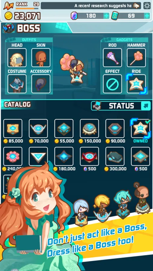 - Deep avatar system to customize yourself to be the ultimate boss!
