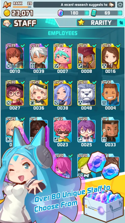 Your staff is the company’s best resource. The game features a large cast of colorful and unique characters each with their personal abilities and talents. Build up your dream team and become the next billion-dollar unicorn!