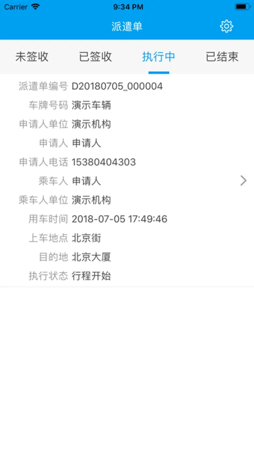 其他客户端可以进行用车申请、审批、调度等业务,调度成功的派遣单数据会流入该应用。该应用主要用于驾驶员进行用车派遣单的签收、出车、导航、目的地到达确认、结束行程使用,以及驾驶员修改自己的登陆密码等。
