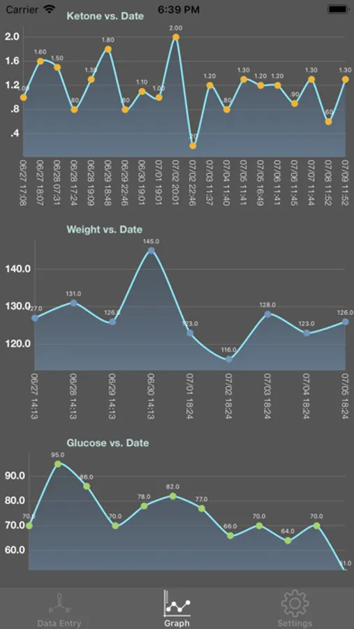 o The app conveniently plots all data so that you can see the trends in the measurements.