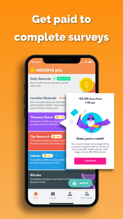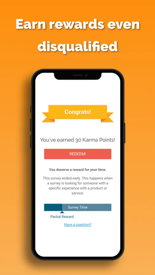 Traditional survey reward apps are frustrating because you can get disqualified midway through the survey, wasting previous time. With cashKarma, you can still earn rewards if you don't qualify - the longer time you spend in the survey, the more you'll be rewarded for your time.
