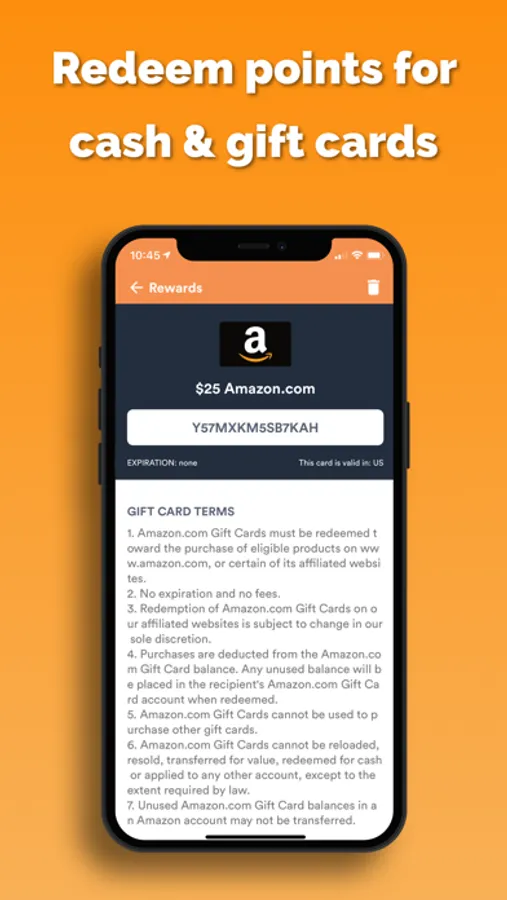 Once you accumulate enough earnings, redeem them for cash and gift cards that will be delivered right to your phone.