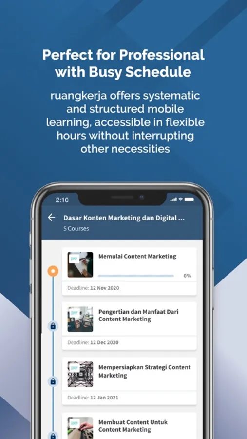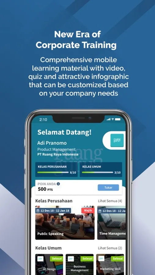 ruangkerja is a mobile- and web-based Learning Management System (LMS) that supports corporate employee training for companies and institutions developed by Ruangguru, the largest Ed-Tech company in Southeast Asia. Until today, ruangkerja has been trusted by companies and institutions from various industries.