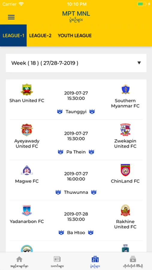 MPT MNL is official app and the free app providing, Match of MNL, live scores, highlight videos and update news related with Myanmar National League.