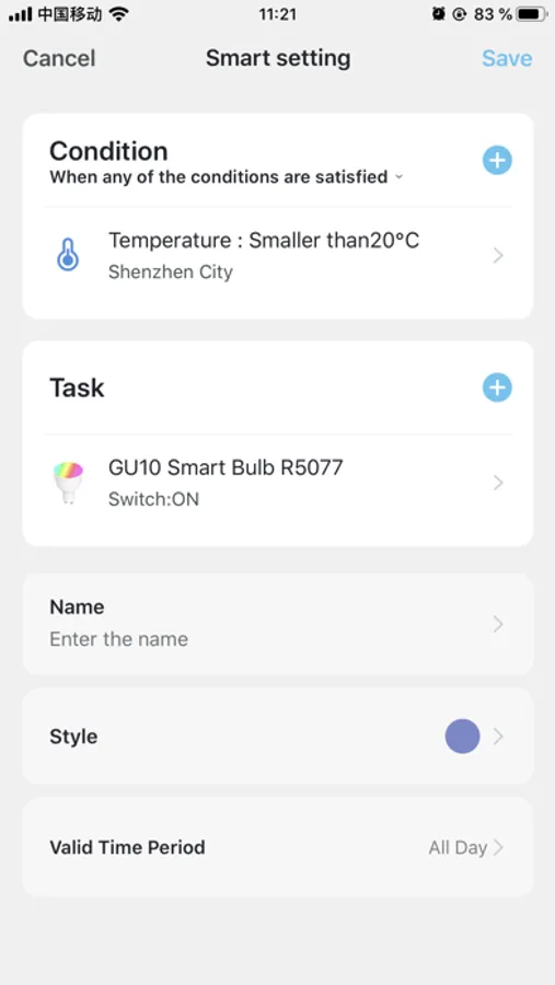 • Interworking of multiple smart devices. Devices automatically start/stop working based on temperature, location and time.