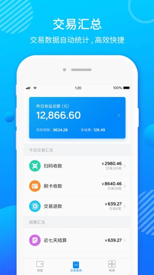 4、高效管理。支持店长、收银员等多角色使用,不同角色实现权限区分,助力商户快速收款,轻松管理商铺。
