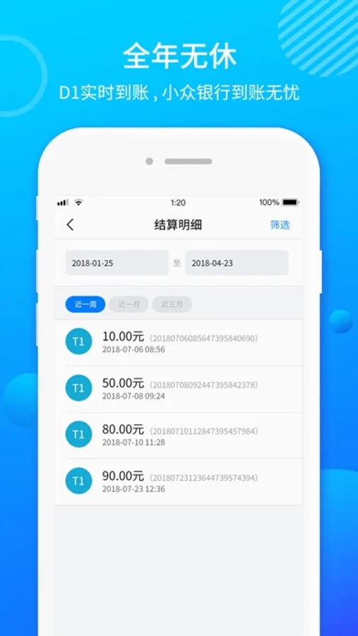 3、结算快捷。全年无休,D1实时到账,小众银行到账无忧。