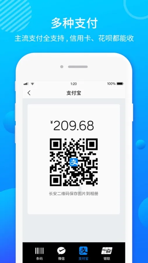 1、主流支付全覆盖。支持微信、支付宝、银联等多种方式,实现扫码、条码、公众号支付。