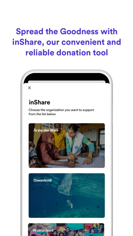 * inShare: Spread the good and donate to one of our cooperating charities and make