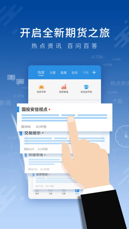 3.财经资讯。第一手的期货热点资讯实时送达,让您及时掌握交易行情。专业研究团队、精品策略报告,为您的投资出谋划策。