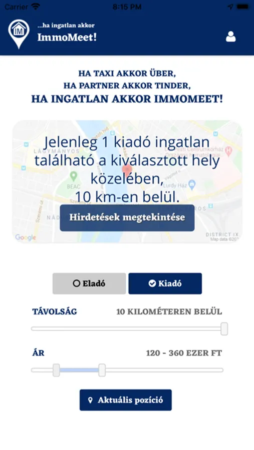 Találja meg könnyedén az eladó/kiadó ingatlanokat a közelben.