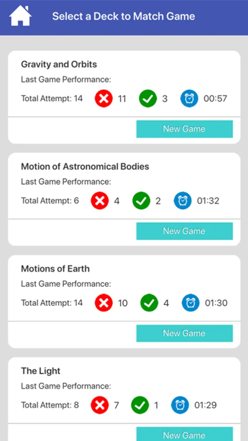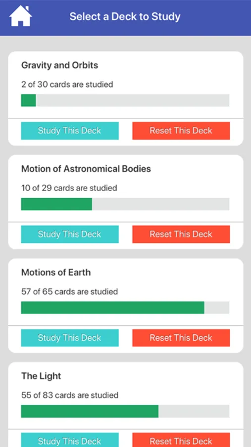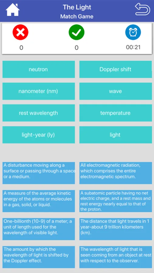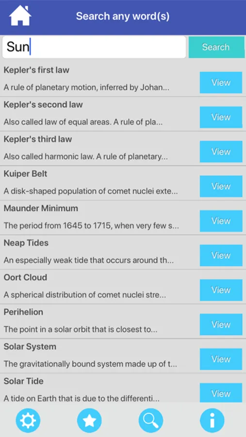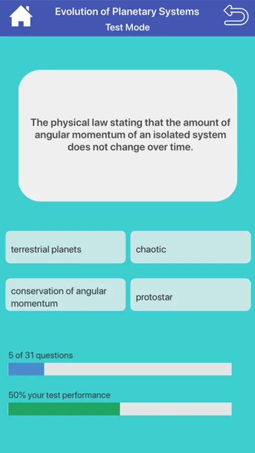 Our app contains study mode, memorize mode, test mode and match game for self learning and exam on the topics of astronomy.